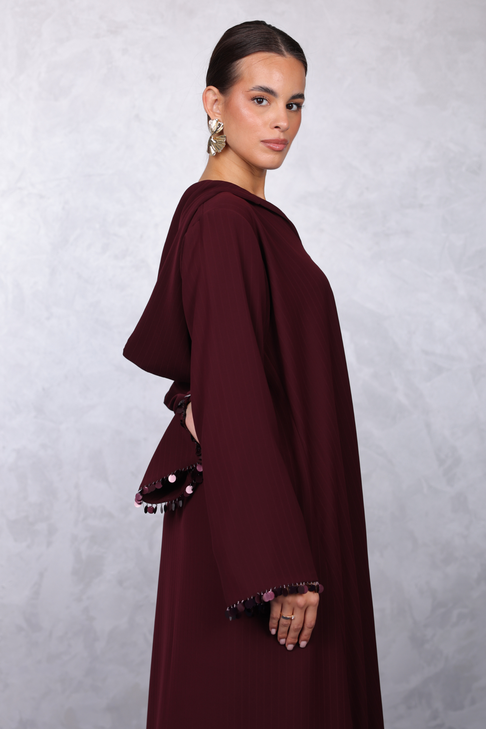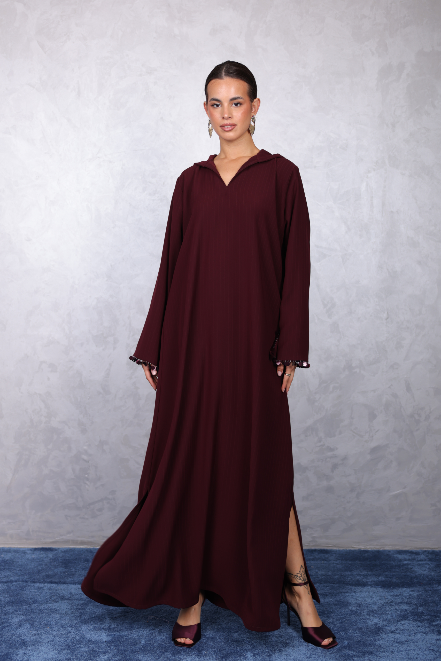 Striped jalabiya designed in a flowing silhouette with side slits for ease and elegance.